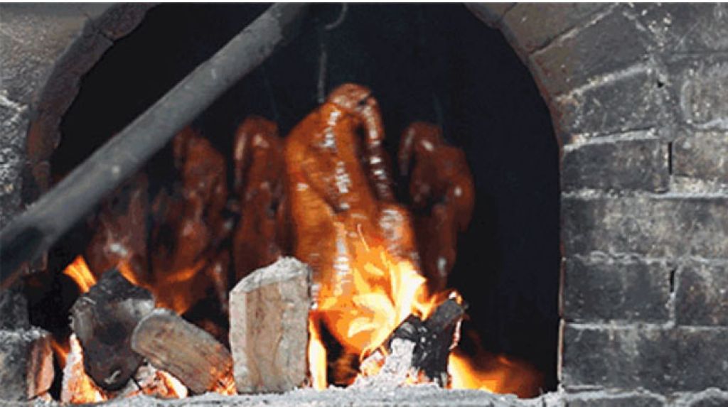 烤炉内,果木噼啪作响,一只只枣红色的烤鸭在师傅的长杆下缓缓转动,散发出诱人的香气。在全聚德,这炉火已经跨越了三个世纪,见证了自晚清、民国到社会主义新中国三个不同时代的历史变迁,传承了中国食鸭文化的精髓。
