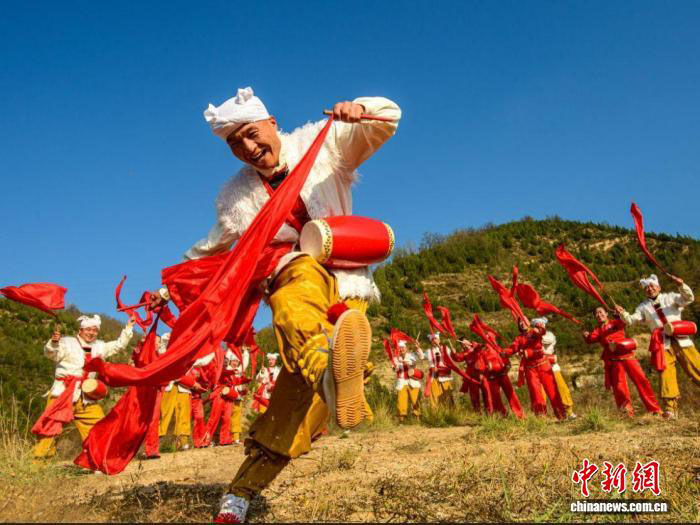黄土地上红绸飞 且听锣鼓震天响