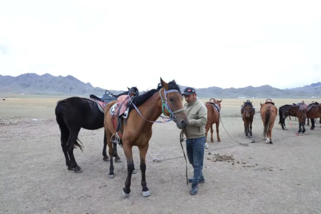 “骑马的时候要从左边上”“不要站在马后面。”赛里木湖畔,每当有游客想来马场体验骑马、拍照,36岁的阿衣达别克·比热依都会热心提醒。
