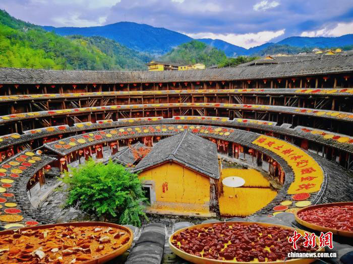 福建永定:百年圆楼映“秋景” 晒秋画卷迎客来