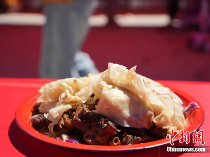 这里的美食,别问!直接吃就对了!羊肉不光会卖萌,还会在饼皮上跳舞。当鲜嫩羊肉,遇上薄如蝉翼的饼皮,红烧汁里翻滚着野葱花椒的香气这不是做饭,这是艺术!