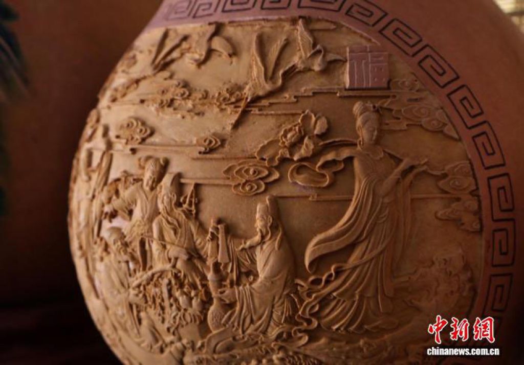 山东烟台蓬莱区葫芦雕刻艺人宋玉良的工作室中,随着刻刀在葫芦表面轻轻划过,八仙衣袂的褶皱随弧面舒展,“八仙过海”的经典场景跃然“葫”上。