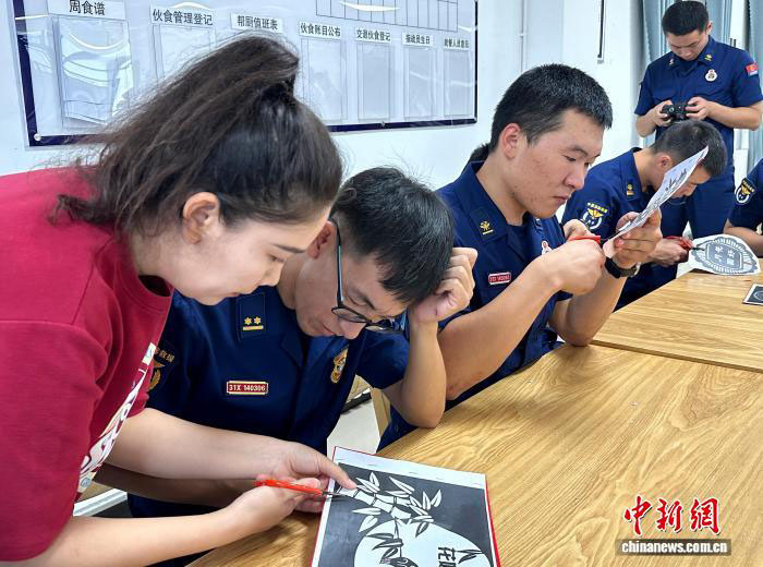 2024年中秋节,夏迪古丽将耗时5天创作的剪纸作品《全民消防生命至上》,赠予哈密市消防救援支队红星大道特勤站。当日现场,她教消防员们剪“月饼”、兔子灯笼,红纸在不同人手中流转,剪出暖心的作品。