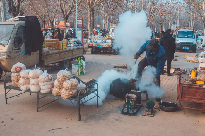 “距离集市几里路时,就听到集市特有的喧闹声,再往前走一段,就嗅到混合着炸油条、蒸包子、红烧肉、馒头烧饼等食品的气味。这是生活的声音,也是生活的气味。”诺贝尔文学奖得主莫言今年回老家赶大集,寥寥数语便勾勒出山东大集的市井风情和人间烟火。