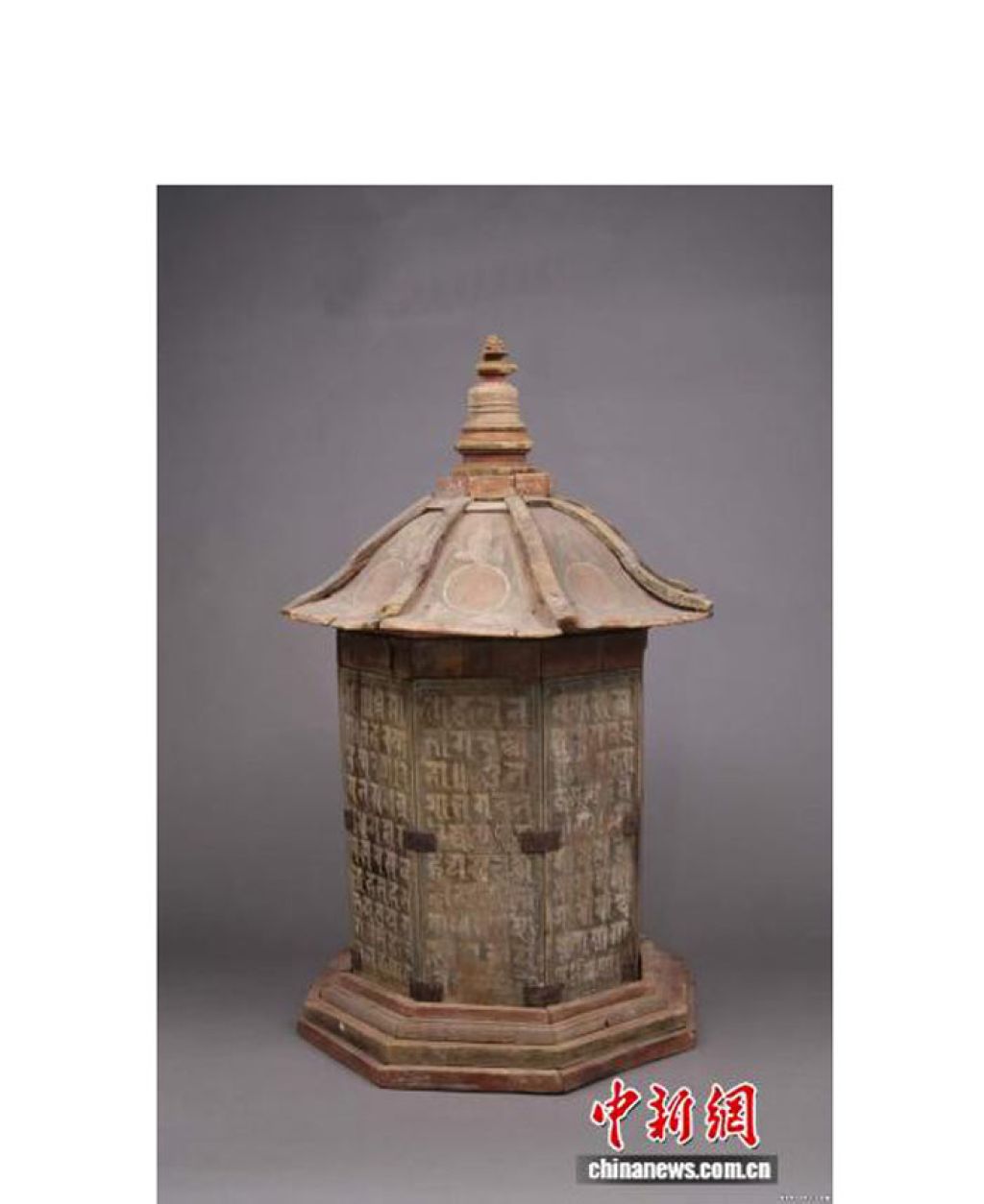 1977年出土于武威市西郊林场西夏墓的木质葬具木缘塔,以松木为材,由塔座、塔身、塔顶、塔刹四部分组成,呈四级八角形,通高73厘米,塔顶边沿宽48.5厘米。它不仅是武威市西夏墓葬中首次发现的完整葬器,同时填补了西夏葬俗研究方面空白。