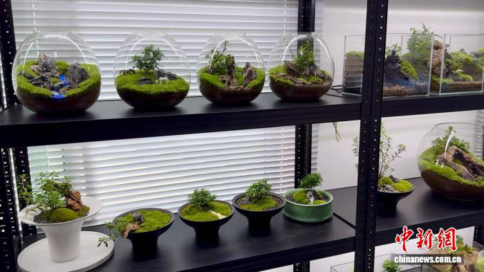 “这些是制作苔藓微景观的基本材料,轻石、赤玉土……”在后坑村“苔藓共富工坊”,主理人张柏强忙着指导村民制作苔藓文创艺术品。一旁的展示柜上,一件件精致的苔藓微景观、盆景,颇有趣味。