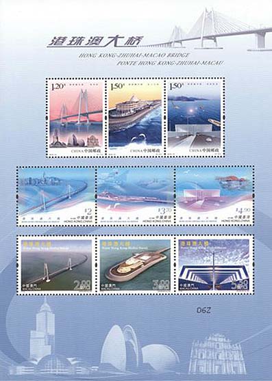 港珠澳大桥通车运营近一周时间,香港邮政10月30日开售“港珠澳大桥”特别邮票及相关集邮品。