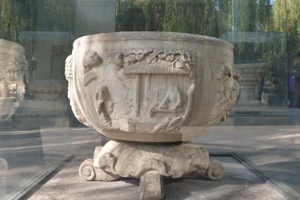 圆明园罹难后,该组构件流落至今天的北京大学校园内,1981年回归。今天基座之上的亭子已消失,只留下石质的基座。