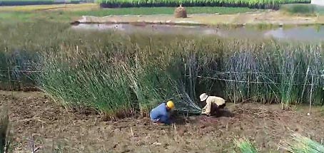 蔺草又称席草,通气、吸湿、韧性好。其除了编制草席,也常被捆绑到大闸蟹身上。在广西柳州市柳江区百朋镇里团村六羊屯,种植蔺草、编制草席的历史就有百余年。而这也是当地唯一种植有蔺草的村子。
