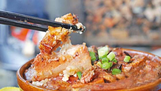 除了海鲜之外,石记私房菜还有另一项招牌菜,就是烹调柴火梅菜芋头扣肉,只见九婶默默蹲在黑漆漆的老砖灶前,不停添上柴木生火,打理着一钵钵“足料”的扣肉,远处已闻到那阵柴木和油香,对于刚走完一段山路的我当堂垂涎三尺,九叔表示,柴火梅菜芋头扣肉制作需时四小时,到高流湾一定要试这道菜式!