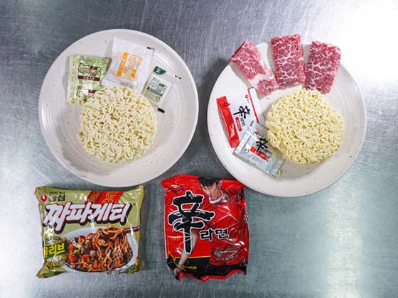 “炸酱乌龙面”由两种即食面:炸酱面及浣熊面混煮而成,两者均是韩国品牌农心旗下出品,所以电影播出后,农心特别公开料理秘方,翻译成多国语言让影迷参考。今次记者就找来香港新麻浦BBQ主厨Lee Sae Hee教大家制作,采用辛辣面及炸酱面煮出改良版本,材料更易买到,口味亦带点微辣,相当惹味。