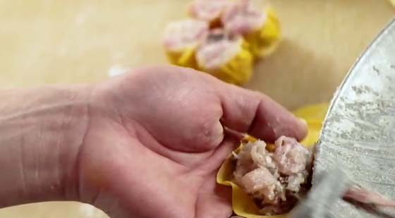 烧卖外形朴实,但其实由外皮以至馅料,由办馅以至蒸制,都考验着厨师的手艺。香港丽思卡尔顿酒店天龙轩主厨刘秉雷说,他学师的年代,酒家的点心部都有专司面皮的师傅,故烧卖的面皮都是天天新鲜搓制的,“我师傅的师傅一定是自家制作面皮!”烧卖皮制法并不花巧,材料不过是面粉、鸡蛋及梘水。“放鸡蛋是为了让面皮变得松软,梘水则让面皮爽身。”后来饮食文化及经营环境改变,为求提升成本效益,酒家都省掉面皮师傅一职,改为向面厂订制面皮。然而,品质监控却没有因此而怠慢。一块面皮摸上手,经验老到的师傅嗅一嗅就知道是否好货色。“烧卖皮最讲究是新鲜度,梘水的气味是否存在?面粉的新鲜香气是否存在?”逾90年历史的佛记粉面厂一直生产烧卖皮,当家的刘大光说:“烧卖皮使用最低筋度的面粉,低筋度面粉做出来的面皮胜在软滑。高筋度的面粉做出口感较粗糙的面皮,犹如吃纸白一般。”