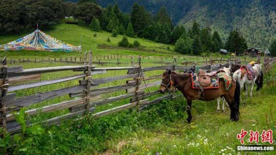每年5至10月,品种繁多的杜鹃、鸢尾、龙胆等野花次第开放,在冷云杉林、皑皑雪峰、蜿蜒溪流的映衬下,美轮美奂,被称为“东方小瑞士”。