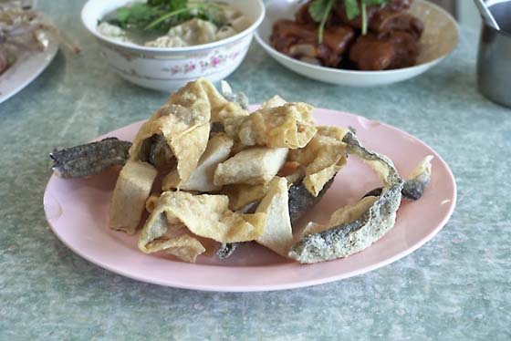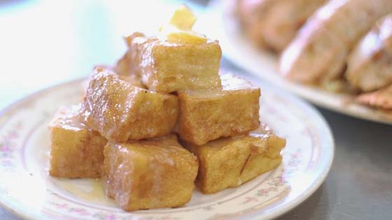 食家推崇市政街市刁钻罕有的本地海产,但在这里又何止鱼虾蟹,其实尚有许多地道驰名小吃,识途老马来吃海鲜之余,也必点熟食中心卖的炸三宝,三宝非甚么煎酿三宝,而是生炸新鲜手包虾肉云吞,还有昔日水上人拿手的门鳝鱼皮、鱼片头,全部即叫即炸,香口非常。陈新记的南乳猪手也是名物,件件焖得酥软,连皮带筋,卤药风味十足,不比区外名店输蚀。海鲜餐欠一份甜点,看看隔壁在叹茶的街坊吧!奶茶旁边炸得又脆又香的一口西多,堆得似座小山,淋上炼奶、牛油,一口一件,甜腻烫嘴。