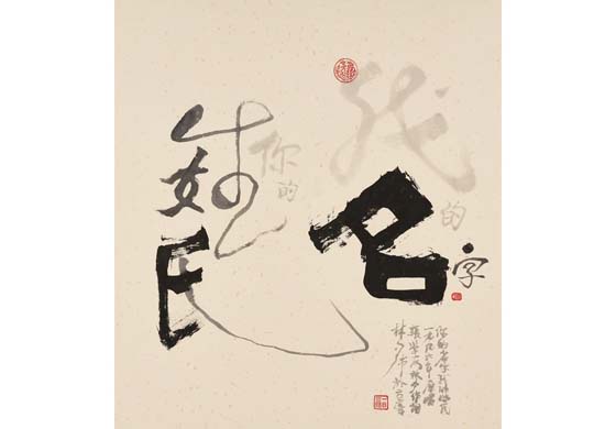 “歌神婚讯我没所闻,这原是配合他演唱会的主题曲,也无损给他结婚贺礼的意义,可以说是冥冥中注定的缘份。这礼物是他在红馆现场彩排时才收到,很仓促。”林夕说,写此书法时他向台湾书法家董阳孜致敬,创作时他换了多支笔,令字体大小浓淡有致。更好玩是他刻意把“我”字跟“你”字对调,视觉效果变成我的名字你的姓氏,表达不分你我的爱情境界。