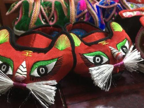韩恒涛介绍,虎头鞋是中国传统手工童鞋,在20世纪中期是一种常见的驱鬼辟邪的吉祥物。但其做工复杂,仅虎头上就需用刺绣、拨花、打籽等多种针法,完成一双虎头鞋一般需要花上3至6天。