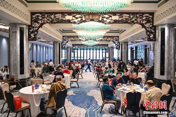 在颇具岭南韵味的大堂里,“老广”(广州人的俗称)罗叔拿起铅笔,在菜单上勾选了虾饺皇、凤爪、艇仔粥、红米肠等菜式。罗叔已经退休,隔三差五便和亲友到此品茗消遣。类似他这样的“老饕”不在少数。