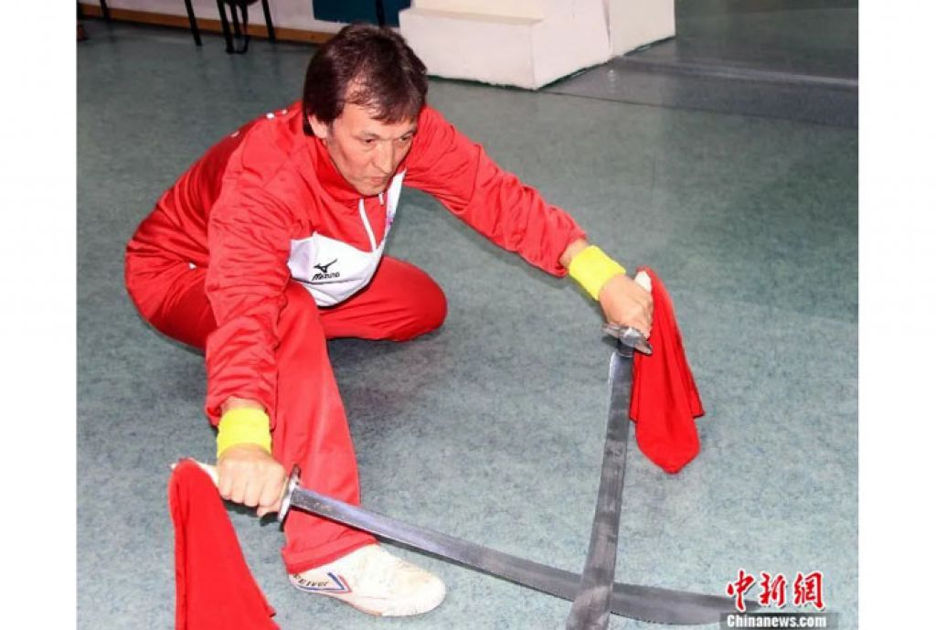 铁木尔:我最早接触中国武术是在20世纪80年代,与不少热爱武术的外国人一样,我也是小时候看到功夫电影后决定去学习武术。那时中国功夫片在我生活的城市阿拉木图十分流行,会功夫的人无所不能,像是有特异功能,这让很多人有了学习中国武术的念头,我也是从那时开始接触武术。先是自己看书看电影琢磨拳术,后来到中国兰州、北京拜师学艺,展开系统学习。在兰州习武期间,兰州武术队的一位学员还赠送我一副双钩。