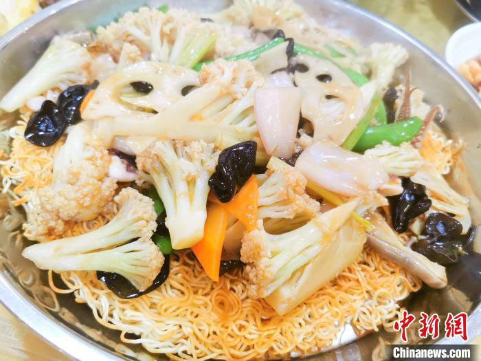 “电视剧《狂飙》上演期间,我们专程开车到台山玩了两天。台山的朋友带去冲蒌镇华东餐厅吃饭,点了招牌的八珍煎面和猪杂煎鼼,没想到分量真的很足,面非常香脆。”广州的梁先生说。