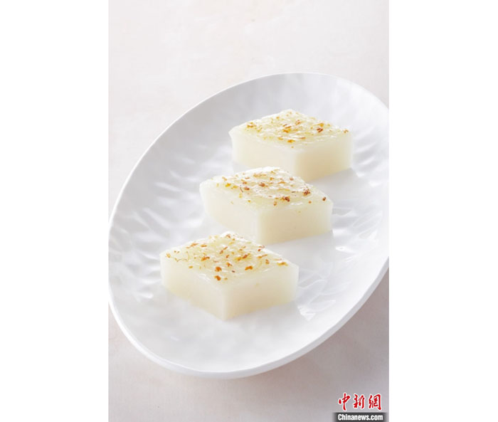 “我们的点心讲究好看、好吃、好工艺。”陆亚明说,原料越简单,对原料的选择、制作方法要求越高。以桂花拉糕为例,这道点心的配料只需糯米粉、糖、糖桂花、水,但作为原材料的糯米粉是购买了近十种进行比对试验后才确定为泰国糯米粉,经过多年反复试验,选定可以让糕体更通透的幼砂糖,而要最佳食用口味,拉糕蒸毕后需自然冷却8小时。