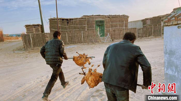 在大快朵颐中,寒意袭来。记者注意到,这里的房屋有点特别。粗壮的胡杨木支撑着房子,细红柳编织成一道道细密的墙,当地人称其为“笆子房”。屋子里几乎没什么家具,中间有个正方形火塘,略低于台面,人们盘腿围塘而坐,点燃胡杨木瞬间暖意袭来,正面烤烤,背面烤烤,记者赶紧给自己来个“双面煎”。