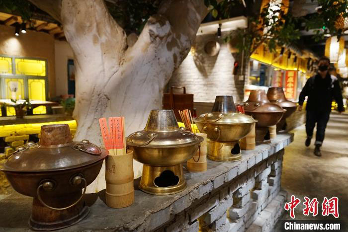 “上锅喽!”锃亮铜锅的“肚”里,木炭烧得通红,滚沸的锅面上齐整搭配各色肉食时蔬,香味四溢,令久等的食客味蕾大动。