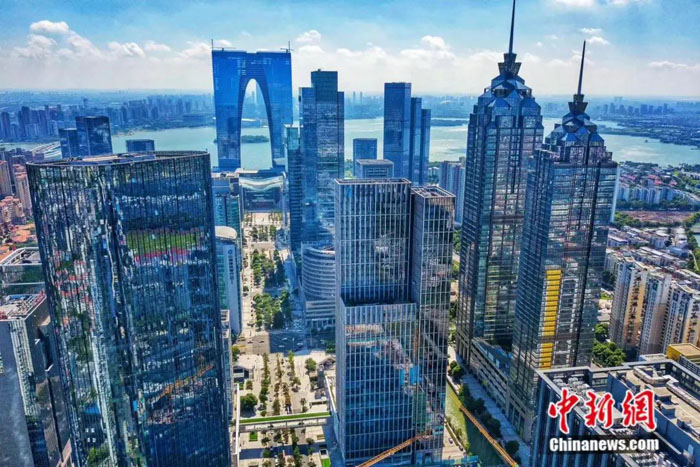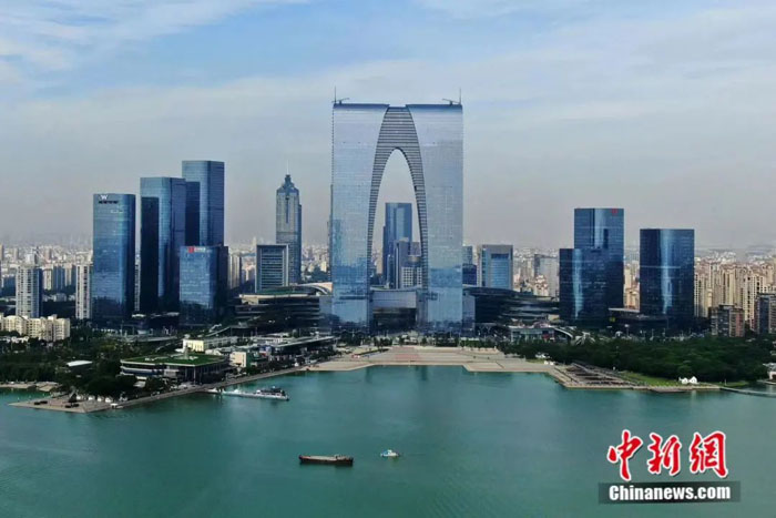 西边是“人家尽枕河”“万树桃花月满天”的千年姑苏城,东边是道路纵横、高楼迭起的现代化苏州,那面现代新风站在金鸡湖畔极目远眺,高楼林立,耸入云霄,仿佛一转头,便已穿越古今,看似慢节奏的苏州,却是抢抓外向型经济发展的排头兵。