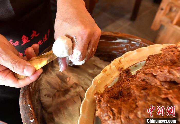 “手工鱼丸更加‘Q弹’,像乒乓球似的,鱼香味结合中间爆浆的滋味,回味无穷。”在福州连江黄岐鱼丸制作技艺传承人林禹看来,福州鱼丸的“古早味”就像妈妈的味道,背后的手工技艺需要传承下去。