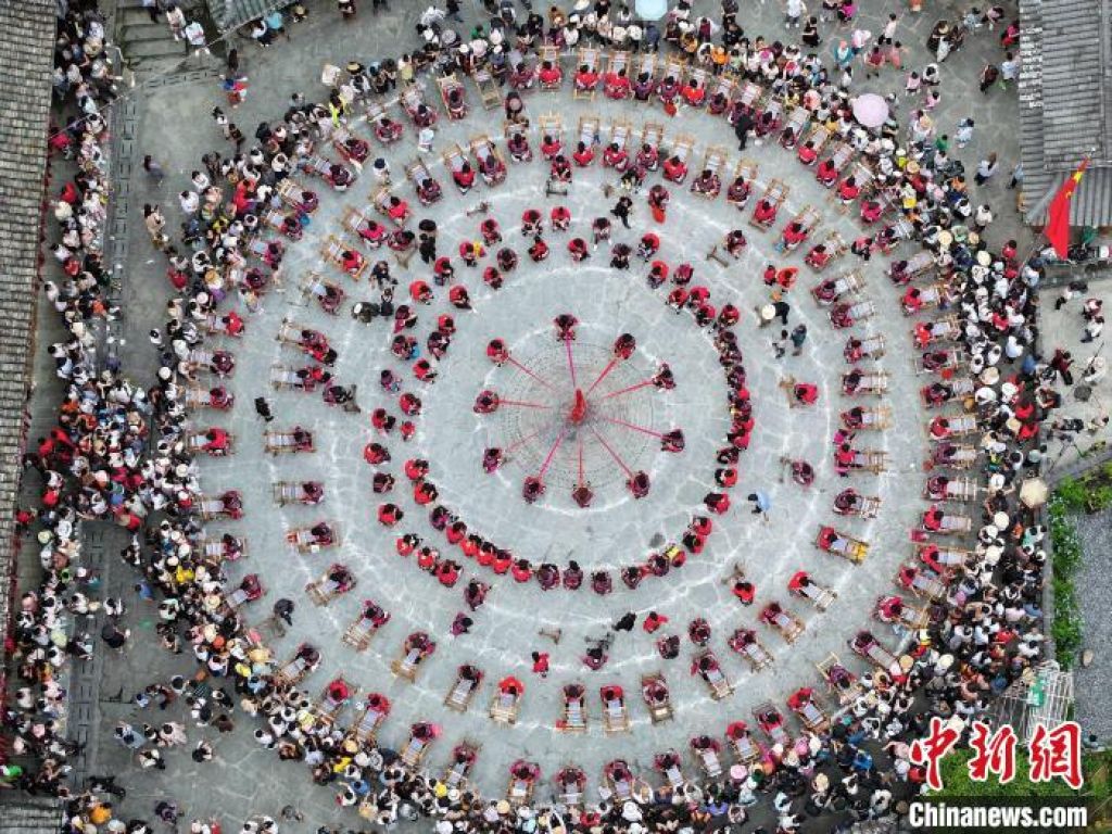 广西桂林市龙胜各族自治县龙脊镇大寨村7月23日举行一年一度的“六月六晒衣节”。