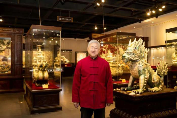 金阿山,1944年生,辽宁大连人,第三届亚太手工艺大师,第四届中国工艺美术大师,首届辽宁工匠,首届大连工匠,正高级工艺美术师,大连贝雕非物质文化遗产代表性传承人。其作品先后获得艾琳国际精品奖、中国工艺美术精品奖百花杯金奖等诸多荣誉。他创作的大型贝雕画《百鸟争艳》《苏园春色》《富贵万寿》和立体贝雕《九龙壁》《龙船》《凤船》等作品,颇受海内外欢迎。