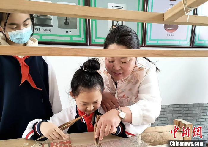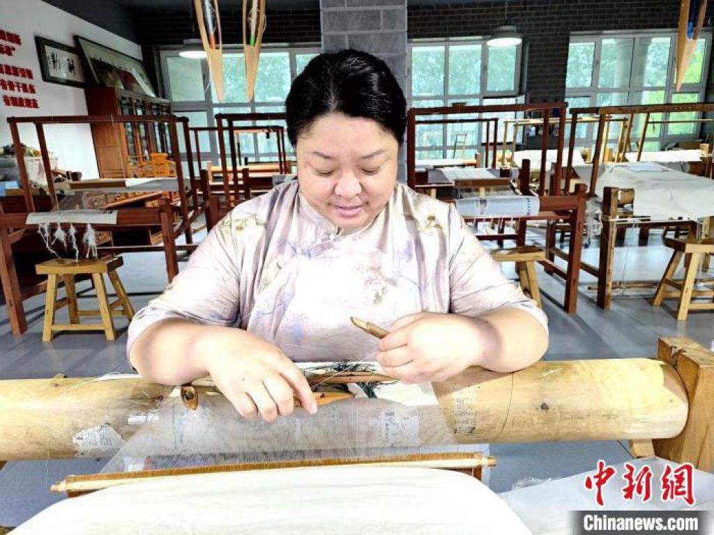 2009年,程苗欣创办定州缂丝实践创新基地,让自己的女儿和村里姑娘们一起学习缂丝技艺。目前,该基地现有织娘12人,平均年龄在30岁左右,靠着一双“巧手”把缂丝技艺呈现在一一幅幅作品中。