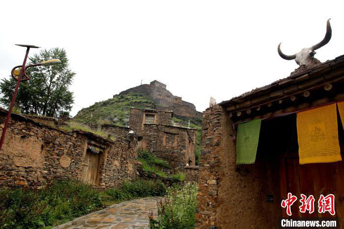 通天河畔的郭吾古堡,一座座由传统藏式砌石工艺垒砌而成的石墙错落有致,石板小径通向幽深处,一旁草色渐深。不远处的兰达百长碉楼,整体为石木结构,外形古朴粗犷、结构严整,是当地典型的贵族“百户”居所。