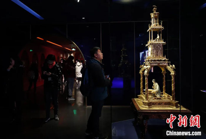 张程:故宫的丰厚内涵和现代意义,有一层就是文明交流互鉴。中华文明对外交流的步伐从来没有停滞,这一历史规律自然表现在了故宫里面。钟表馆里的文物,一部分由清朝封疆大吏采买而来,还有很多是造办处根据西洋钟表的样子改造的。像写下“八方向化,九土来王”的铜镀金写字人钟,就是中西结合、洋为中用的典型藏品。西洋文化传入中国后,不少器物都进行了以我为主的开发和改造。