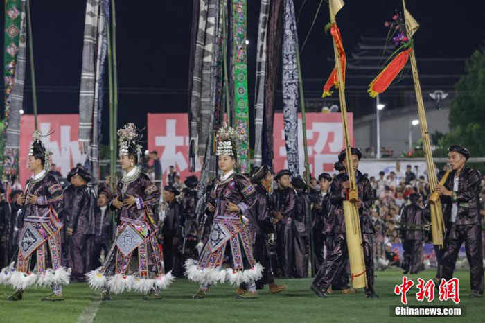 各个苗村侗寨,自发组织的暖场活动轮番登场,比拼气势。身着民族服饰的村民们,表演着非物质文化遗产《侗族大歌》《苗族芦笙舞》,和现场数万观众一起互动。