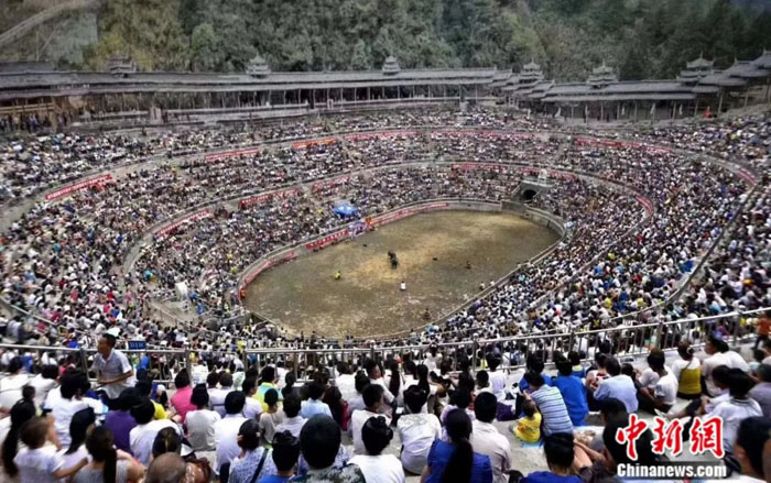 榕江还有“贵州超级碗”──斗牛,有亚洲最大的斗牛场。牛王争夺赛总能让人把心提到嗓子眼。
