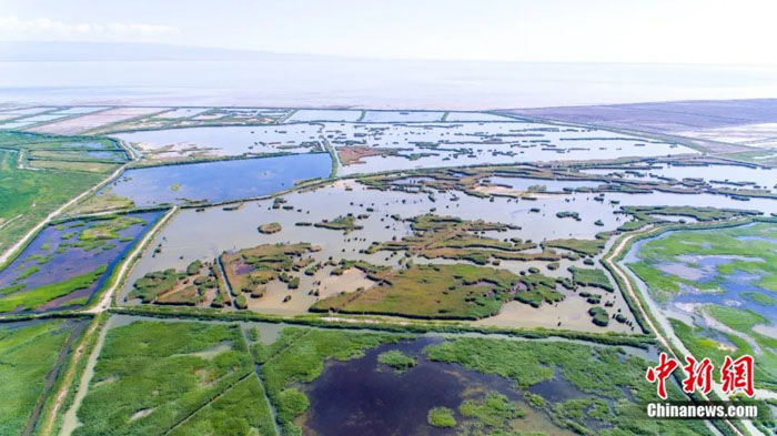 在山脉与沙漠的低洼处,大自然神奇地创造了一个烟波浩淼的水世界。
