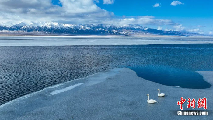 每年冬天湖面冰封后,喀纳斯湖又像一面白色的水晶镜,镶嵌在崇山峻岭中间。当目光从最北面的阿尔泰山往南移至古尔班通古特沙漠的西缘,新疆另一个大湖──艾比湖横亘在眼前,她是新疆面积最大的咸水湖。