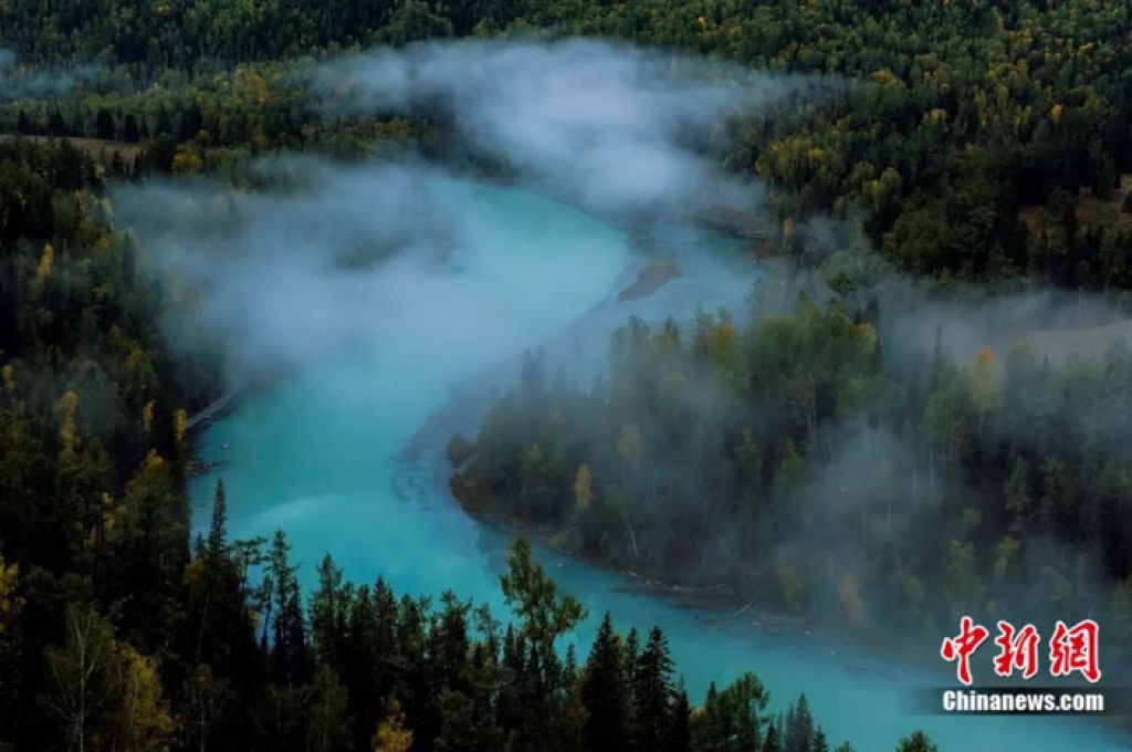 在新疆西北角,坐落着一处典型的冰川湖──喀纳斯湖,犹如一串珍珠洒落在阿尔泰山深处。
