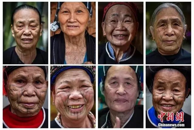景区内从容织锦的最后一代,绣面文身阿婆,青色纹身绵延在面庞、手臂和腿部,被称作“人体上的敦煌壁画”。