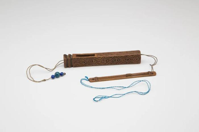 口弦还有着模拟话语、表达隐语的功能。口弦发音独特,因而有着强大的模拟功能。人们在田间、山头劳作之余,常用它来模拟鸟雀、野兽、风穿林啸等声音,从而传达情绪。而自古以来,口弦与爱情的传说和关联更是绵绵不断。青年男女把倾慕之情编成爱的“密码”,用口弦演绎出来,弦音策动、声波传递,会意之人很快就能“破译”。清朝《番社采风图考》中,记载了台湾高山族用口弦对答的场景:“未婚者弹口琴挑之。衔弓于唇间,齿隙吞吐成音……互相和答,意合,遂成夫妇。”在特定语境下,口弦吹奏的是什么故事,传递什么样的情感,听者一清二楚。