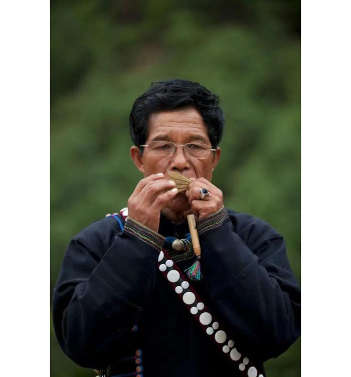 口弦被誉为人类“初音”,将它放在两唇间,利用口中的气流使颤音发生变化、产生共鸣,便有了曲调。口弦虽然小巧别致,但表现力极强。每当它的声音响起,仿佛鸟儿在林中呼唤,山涧流水潺潺。