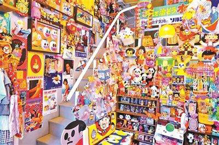 “cha cha cha”是一家典型的中古玩具店。撩起帘子一角,走进店内的瞬间,竟仿佛发生了空间置换。在这个精致的复式小房间里,货架上五颜六色的玩具琳琅满目,错落有致。
