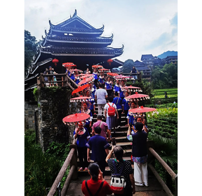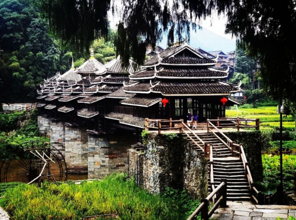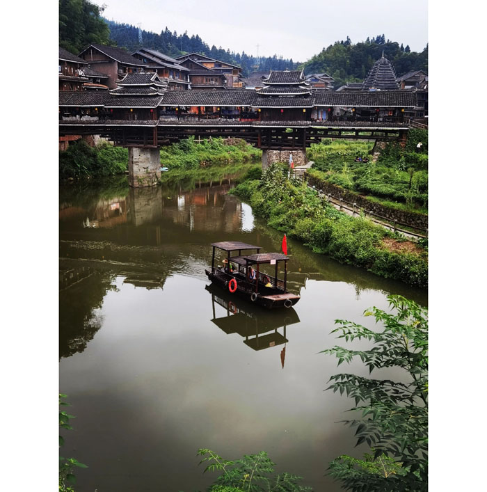 走在风雨桥之上,各位可以体会到,我们脚下踩着的木板非常沉稳。抬头向上,各种榫卯结构也严丝合缝,几乎看不出百年来的风霜。面对这样的建筑奇迹,我们必须为桥梁设计建造者的智慧喝彩,也要感谢侗族人民百年以来的细心呵护。从风雨桥浓厚的文化内涵内涵来看,风雨桥被侗族人认为是人们和前世今生沟通的“生命之桥”或“生命通道”,一般都建在侗寨的“水口”,也就是河流出侗寨的地方,既方便了对外交通,也希望能够把福气留在侗寨之中,因此它也被称之为”福桥”。