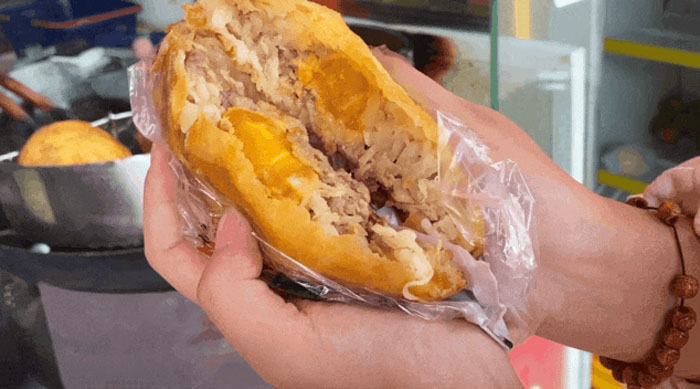每日现炊糯米,晶莹剔透粒粒分明,有嚼劲但又不会过分生硬。配着爽脆可口、香气四溢的油条碎末,再淋上咸鲜适中、肥而不腻的肉碎儿汤。