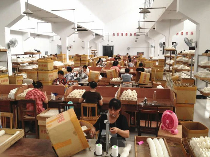 “判断一只羽毛球质量的好坏有四大标准,外观漂亮、落点准确、空中稳定性和耐打性。从外观上来说,我们首先挑选出品质好的羽毛,要想做到空中稳定,那么羽毛的弯向、拱度等都要保持一致,插球过程中整个球形的角度也要一致。”浙江江山多娇实业有限公司总经理吴伟星分享道。