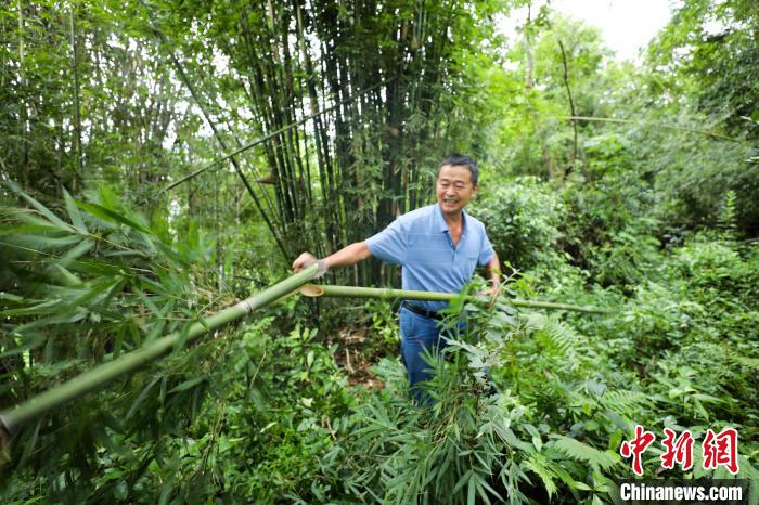 长泰竹编制作技艺传承人林仁凤介绍,制作竹编的第一步是选材。“好竹难求,做竹编需要的材料都选用4-5年以上竹龄的竹子,才有足够的韧性。”在竹林中,林仁凤手起刀落,一根竹子便应声而倒。