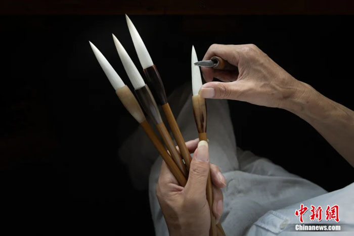 竹海里用之不竭的小竹竿,让“造笔”这项工艺迅速发展起来。“湖州之笔,冠绝天下”,王献之、颜真卿、文同等著名书法家,都对湖笔爱不释手,说起来湖笔与中国书法史密不可分。