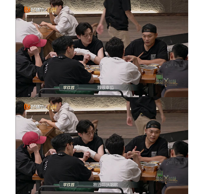 团体生活给了他新鲜和温暖的体验,比如初见老舅董宝石,“虽然我也看起来很凶,但是我觉得他比我更凶,所以就以为需要保持一点距离,但是我没想到他是一个心很软、很温柔的人,我很喜欢这个兄弟。”