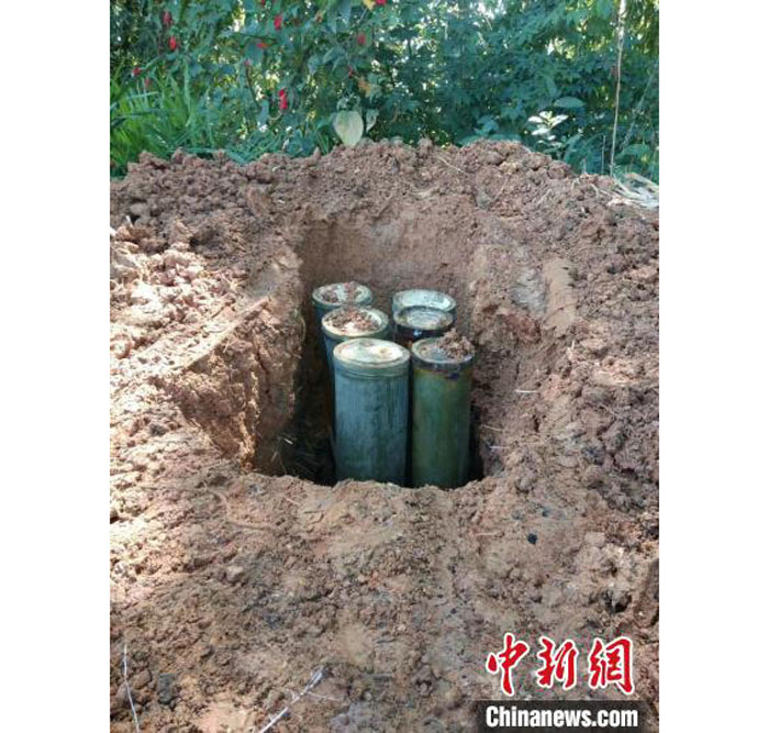 李岩所告诉记者,制作酸茶首先要将新鲜茶叶蒸熟,取出茶叶待冷却后装到竹筒里一层层压实,用新鲜芭蕉叶封口。选一处阴凉的地方挖一个深坑,垫上芭蕉叶,再将封好的竹筒埋起来,让茶叶在地下慢慢发酵。经过一个半月的等待,挖出竹筒把茶叶取出。“上好的酸茶会呈金黄色,将发酵后的茶叶放在石臼中,用传统的脚碓舂烂揉成小团,压成饼状,晒两天左右,剪成小块,接着再暴晒五天,就能得到成品。”