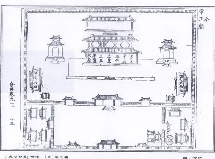 秦汉以后,各朝都重视对前代帝王的祭祀。唐玄宗在国都长安分别建了三皇庙、五帝庙、周武王庙和汉高祖庙进行祭祀。宋代在各地营建、修复先代帝王陵庙 70余座。元朝,也继承了祭祀前代贤君的传统。